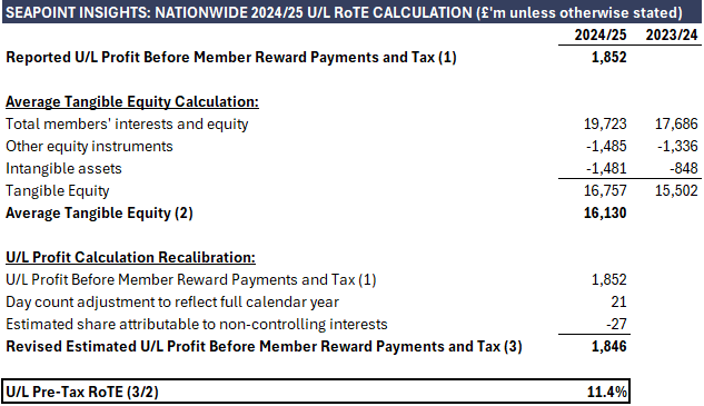 * SeaPoint Insights independent recalculation of Nationwide 2024/25 RoTE, using Nationwide results materials: